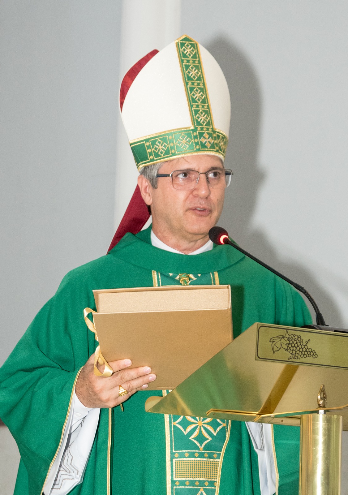 Antes da bênção final, Frei Rodrigo entregou a Dom Márcio o Livro de Ouro da Paróquia, contendo mensagens dos fiéis que colaboraram na aquisição dos báculos e anéis episcopais ofertados ao novo bispo, como sinal do carinho e da comunhão da comunidade paroquial.